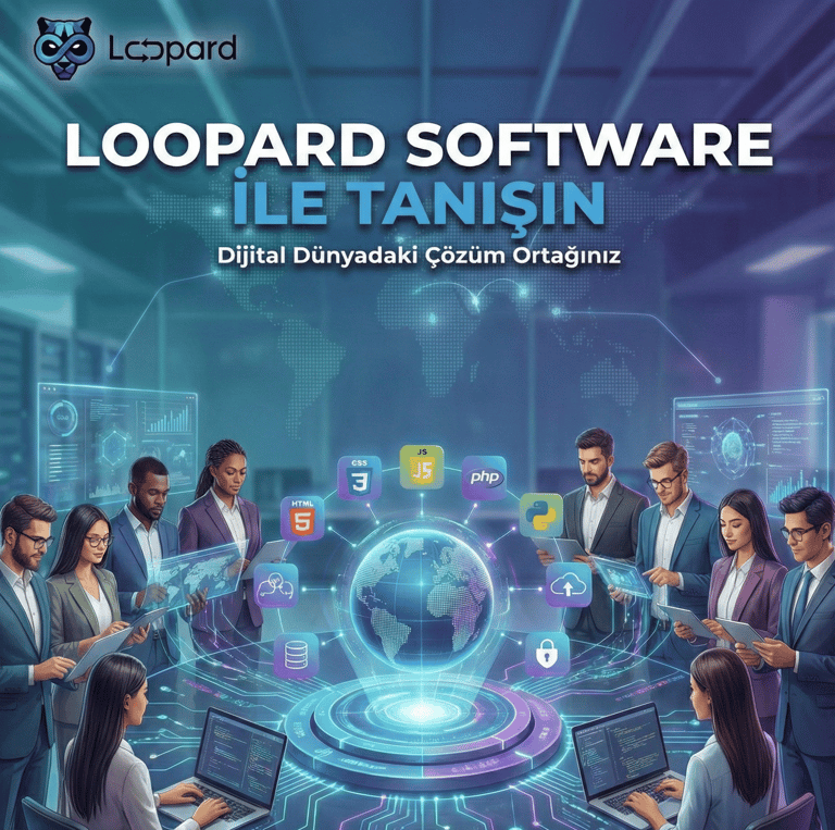 Teknolojiyle yaratıcılığı birleştiren Loopard Software, markaların dijital dünyadaki tüm ihtiyaçlarını tek bir çatı altında karşılayan yeni nesil bir teknoloji şirketidir. Sadece kod yazmıyor; kullanıcı dostu Web Tasarım ve Mobil Uygulama (iOS & Android) çözümlerimizle işletmenize hem hız hem de vizyon katıyoruz.